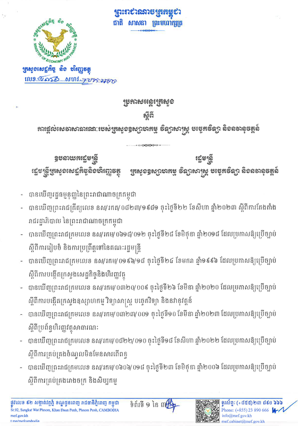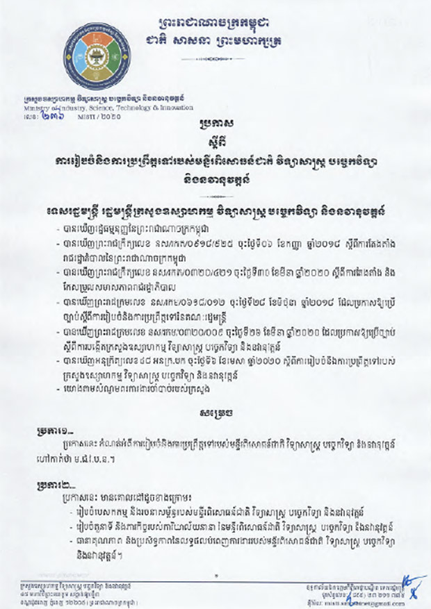 UPDATE: ប្រកាសអន្តរក្រសួង ស្ដីពីការផ្ដល់សេវាសាធារណៈរបស់ក្រសួងឧស្សាហកម្ម វិទ្យាសាស្ត្រ បច្ចេកវិទ្យា និងនវានុវត្តន៍ (២០២៣) #MISTI