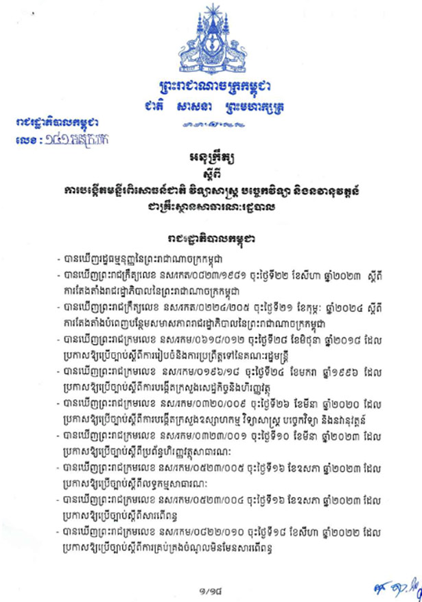 អនុក្រឹត្យស្តីពីការបង្កើត ម.ជ.វ.ប.ន.ជាគ្រឺះស្ថានសាធារណៈរដ្ឋបាល
